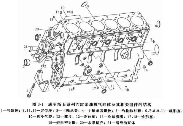多缸柴油机的各气缸通常铸成一个整体,称为气缸体。气缸体是柴油机的主体,是安装其他零部件和附件的支承骨架。气缸体应保证柴油机在运行中所需的强度,结构要紧凑。